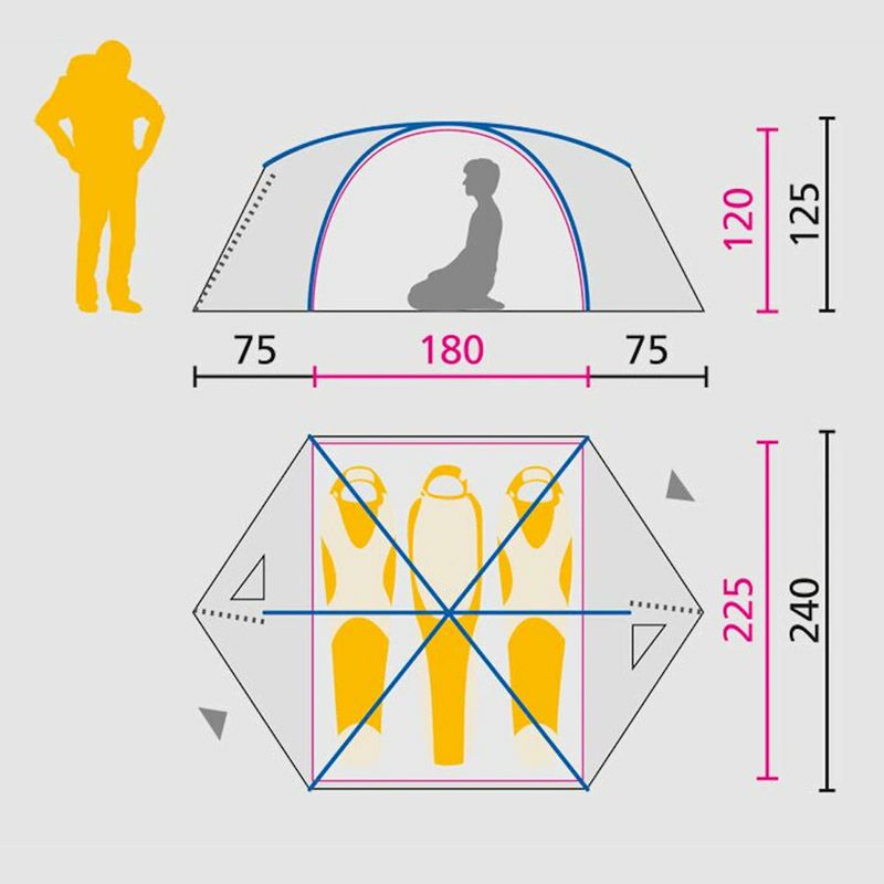簡単設営、3人用、軽量オールシーズンテント。