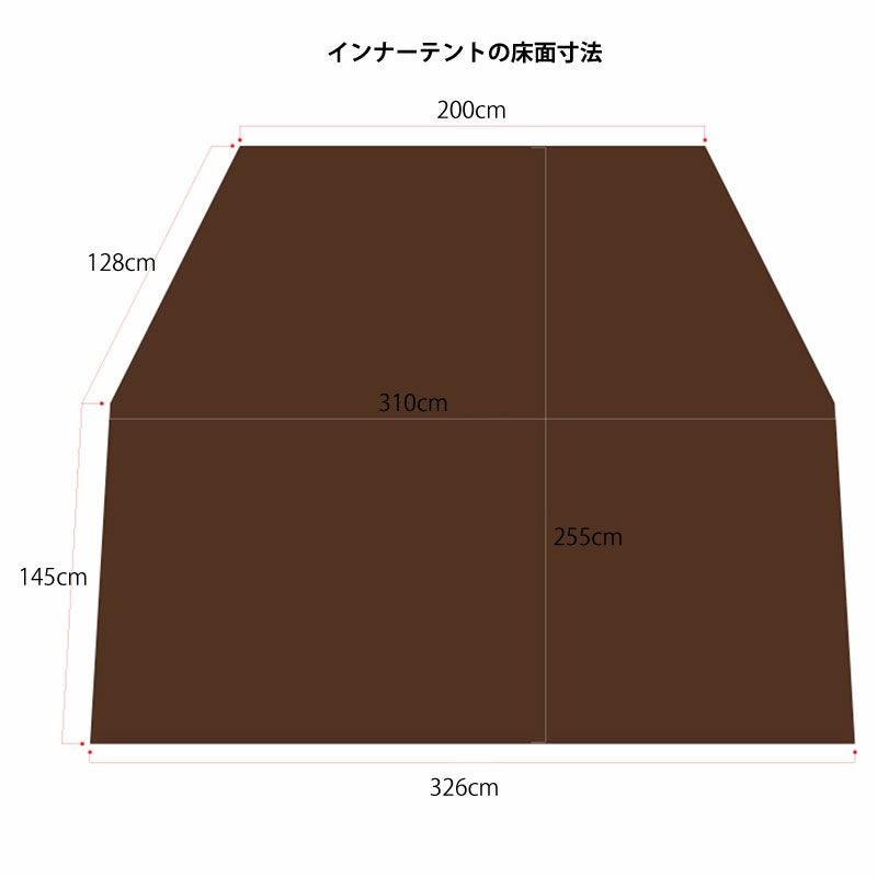 床寸法:入口側幅326cm、奥側幅200cm、奥行き255cm、入口高さ170cm、中高さ153cm