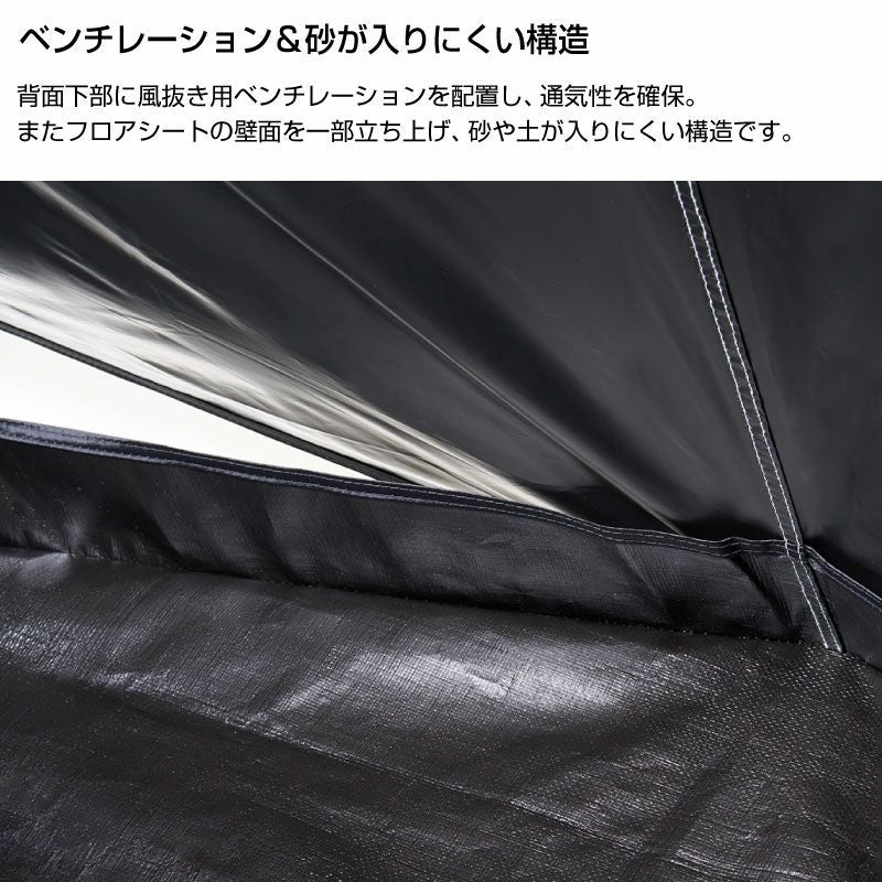構成:シート、メインフレーム、サブフレーム、屋根フレーム、収納バッグ、フレーム用収納袋、ロープ、ペグ、小物袋
