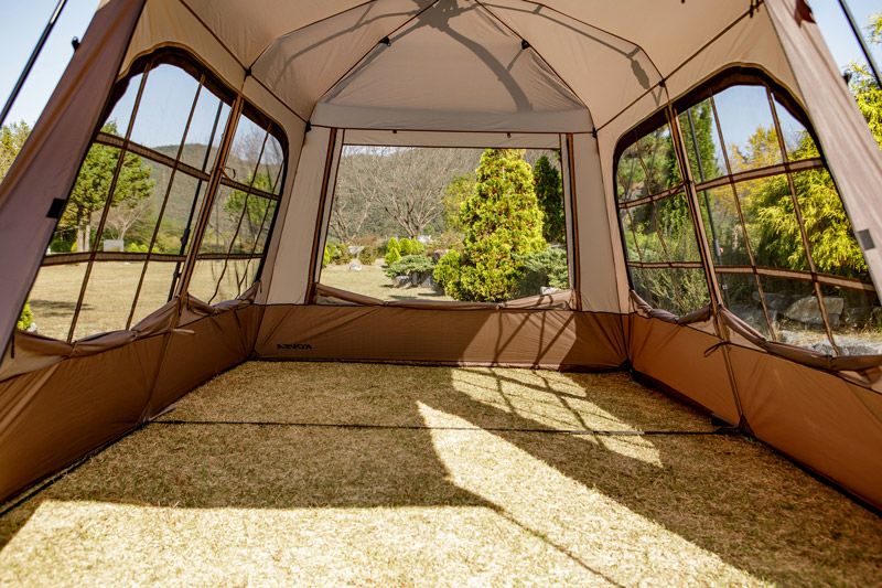 仕様 サイズ:本体/400×275×200cm(設置時) インナーテント/260×215×180cm(設置時) ルーフ/300×220cm グラウンドシート/255×210cm 重量:17kg(±0.5) 材質:本体/ポリエステル(68D ポリタフタ、耐水圧2000mm、PU、W/P、W/R) インナーテント/ポリエステル(68D ポリタフタ、W/R) 床/ポリエステル(150D ポリオックスフォード、耐水圧2000mm、PU、W/P) ルーフ/ポリエステル(68D ポリタフタ、耐水圧2000mm、PU、W/P、W/R) メインポール(オートポール)/スチール 直径20mm、直径16mm アップライトポール/スチール 直径16mm グランドシート/ポリエチレン 構成:本体、インナーテント、メインポール×1EA、アップライトポール×2EA、ルーフ、 グラウンドシート、スチールペグ×20EA、ストリング×8EA、収納ケース