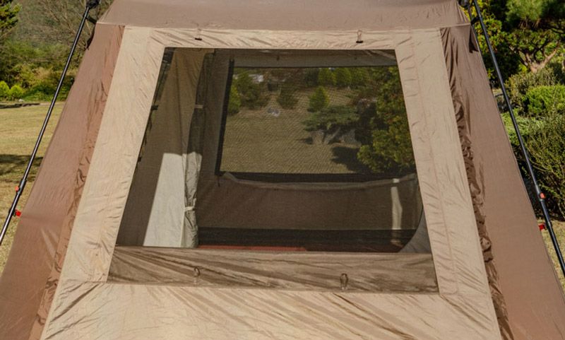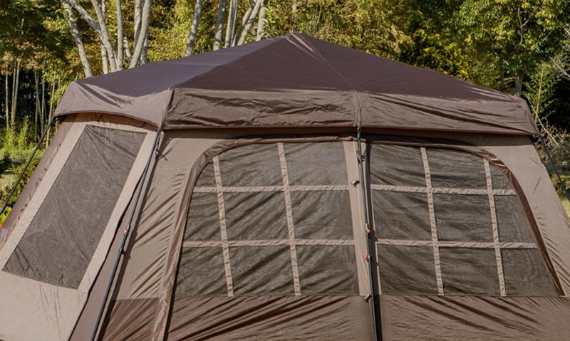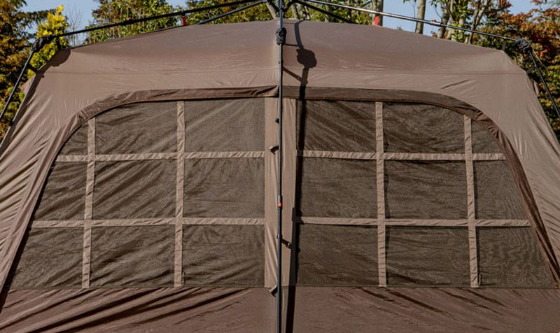 ワンタッチで設営が簡単にできる4人用ワンタッチテントです。 オートフレーム構造だから、設営や撤去も簡単にできます。 ロッジ型のオシャレな格子窓がポイント。広くて開放性がある室内空間を楽しめます。 寝室とリビングの2つの居住スペースを備えた2ルームテントだから使い勝手も抜群! インナーテント側面とリアメッシュウィンドウは内部開閉可能です。 フレーム一体型構造だから取付と収納が楽にできます。