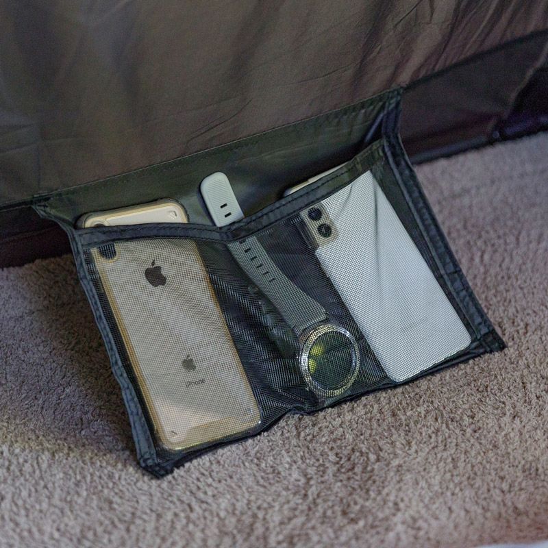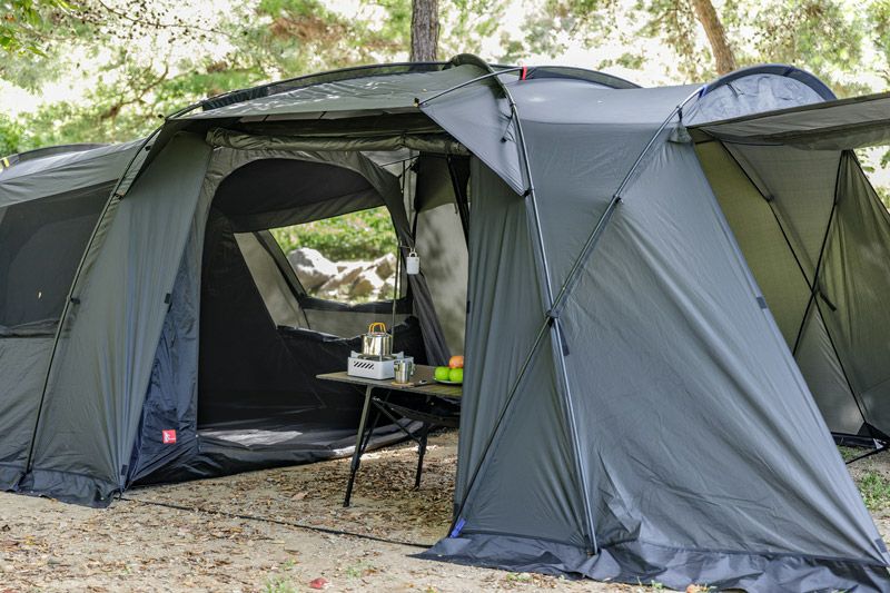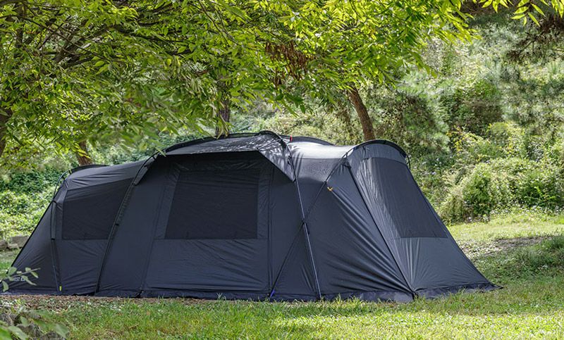仕様 サイズ:本体(設置時)/620×330×210cm インナーテント(設置時)/310(250)×240×180cm ルーフ/450×250cm グランドシート/300(240)×230cm 重量:21kg(±0.5) カラー:ブラック 材質:本体/ポリエステル(68D ポリタフタ、耐水圧2000mm、PU、W/P、W/R) インナーテント/ポリエステル(68D ポリタフタ、W/R) 床/ポリエステル(150D ポリオックスフォード、耐水圧2000mm、PU、W/P、W/R) ルーフ/ポリエステル(68D ポリタフタ、耐水圧2000mm、PU、W/P、W/R) グラウンドシート/プリエチレン メインポール/アルミニウム 直径16mm フロントポール/アルミニウム 直径14.5mm インナーテントポール/アルミニウム 直径14.5mm 軒ポール/直径11.8mm アップライトポール/スチール 直径16mm 構成:本体、インナーテント、ルーフ、グラウンドシート、メインポール×2EA、 フロントポール×1EA、インナーテントポール×1EA、軒ポール×2EA、 アップライトポール×2EA、スチールペグ×28EA、ストリング×14EA、 ポール修理キット、収納ケース