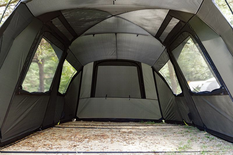 実用的なデザイン、より大きくなった新しいファミリーテント! 開閉が可能なサイドメッシュウィンドウ。 側面の出入口で移動が便利! 重量が軽く耐久性に優れたアルミポール使用。