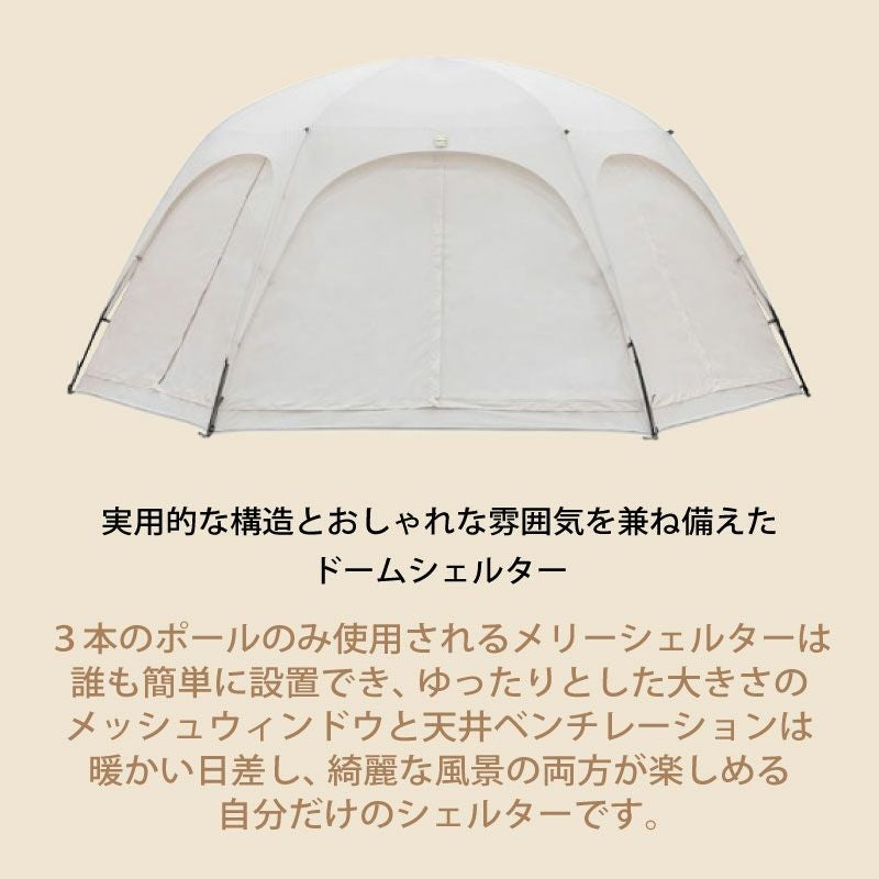 ドーム型の自立型ポール構造で耐久性と安定性に優れたシェルターです。