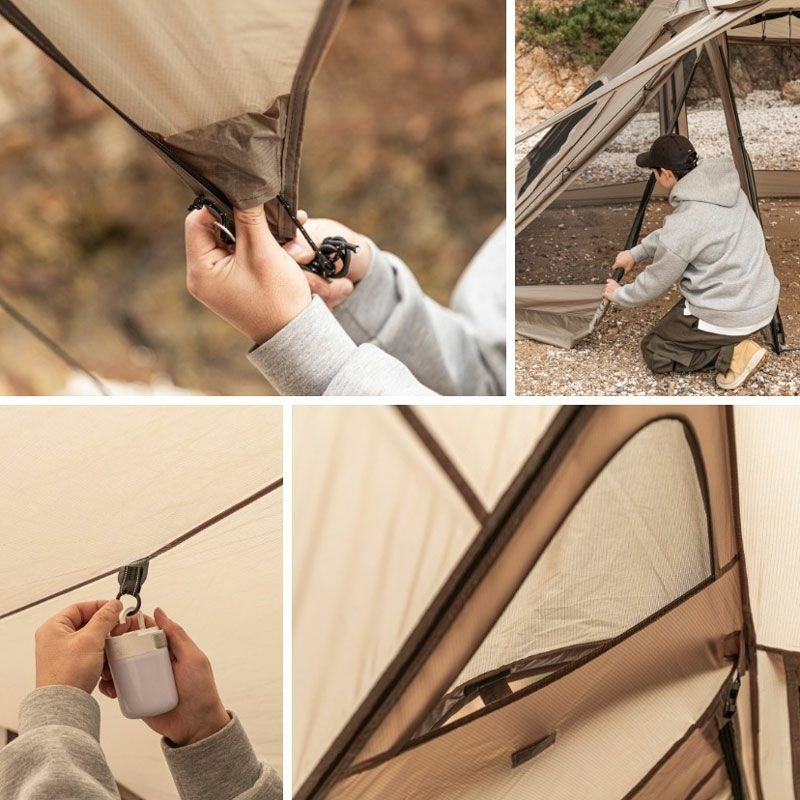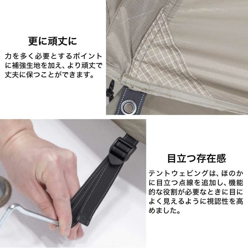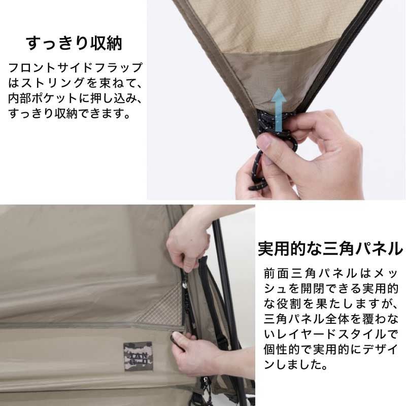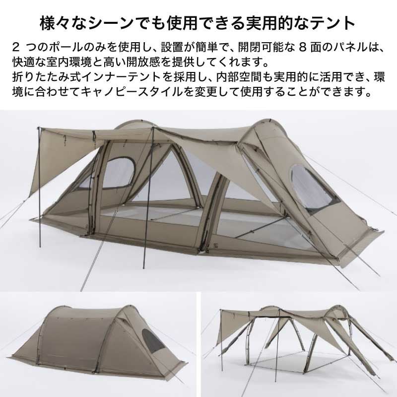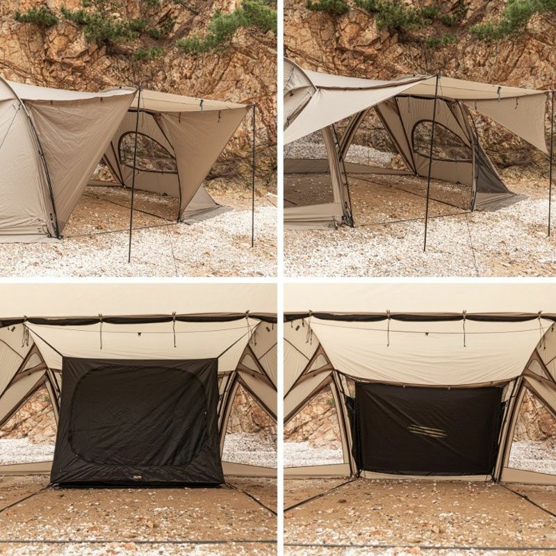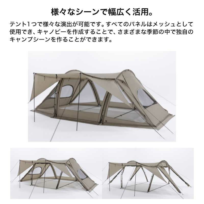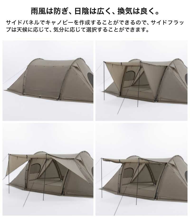 サイドパネルでキャノピーを作成することができ、環境に合わせて幅広く使える活用性が非常に高いテントです。