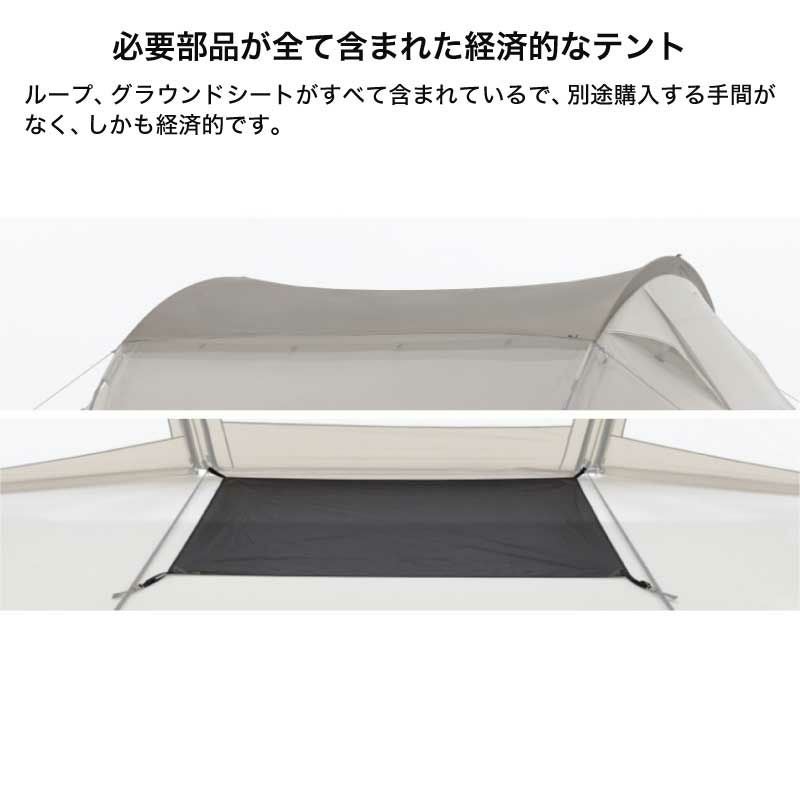 構成:本体、インナーテント、ルーフ、グランドシート、メインポール×2、アップライトポール×2、スチールペグ×25、ストリング×11(本体結合6)、ポール修理キット、収納ケース