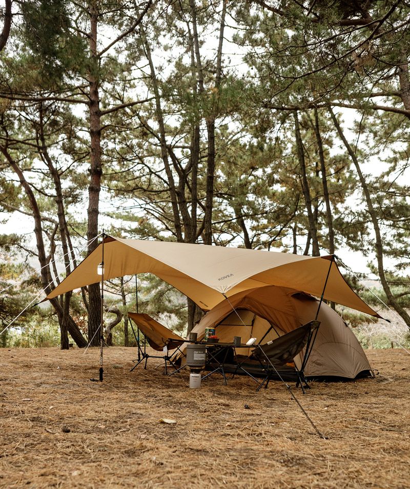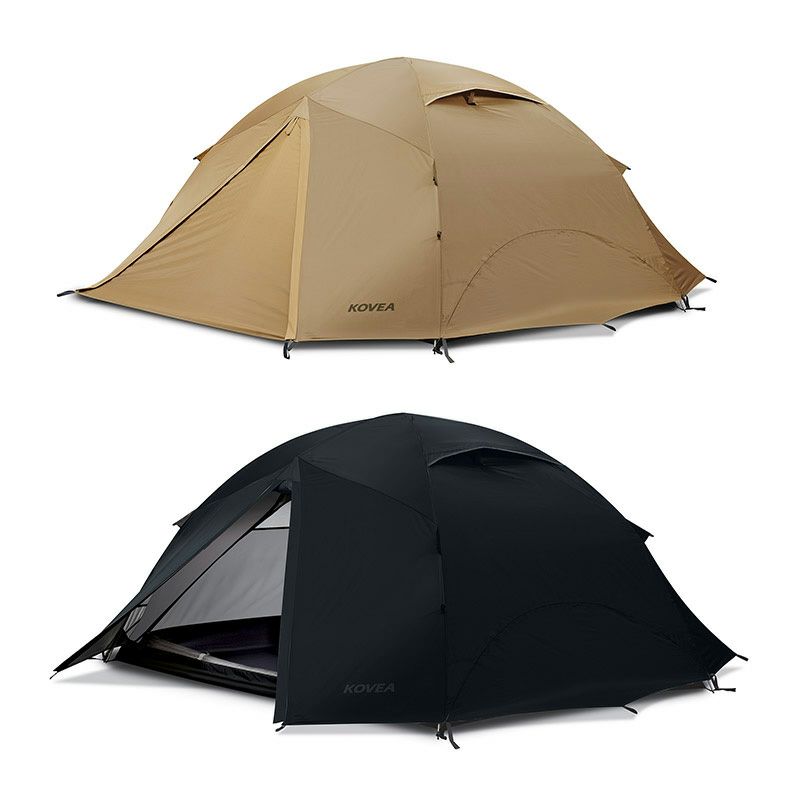 仕様 サイズ:本体(設置時)/220×250×115cm インナーテント(設置時)/210×150×110cm グランドシート/200×140cm 重量:3.2kg カラー:タン、ブラック 材質:本体/ポリエステル(68D ポリリップストップ、耐水圧2000mm、PU、W/P、W/R) インナーテント/ポリエステル(68D ポリタフタ、W/R) 床/ポリエステル(75D ポリタフタ、耐水圧2000mm、PU、W/P、W/R) グラウンドシート/ポリエステル(68Dポリタフタ、耐水圧2000mm、PU、W/P、W/R) メインポール/アルミニウム 直径9mm リッジポール/アルミニウム 直径9mm 構成:本体、インナーテント、メインポール×2EA、リッジポール×1EA、アルミペグ×14EA、 ストリング×4EA、 グラウンドシート、収納ケース