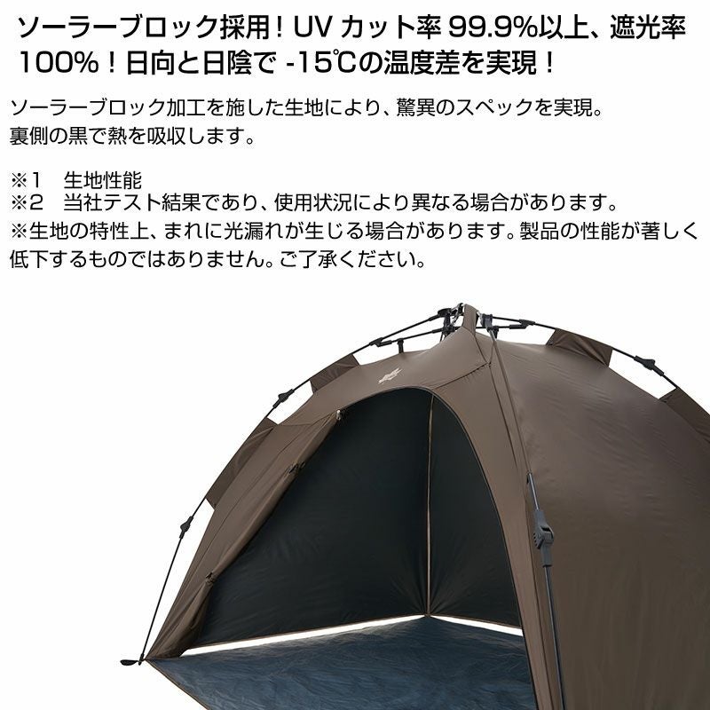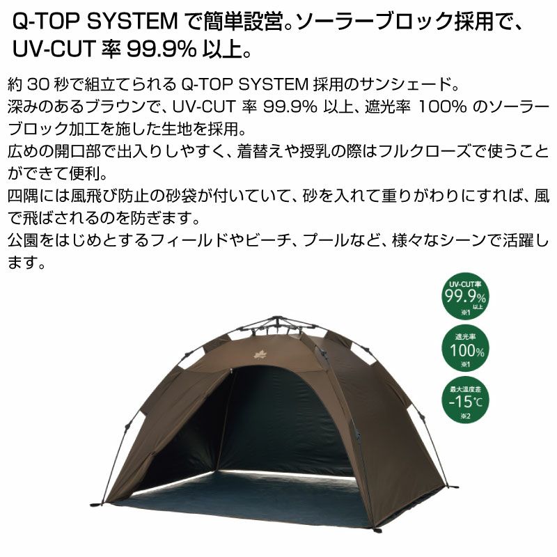 約30秒で組立てられるQ-TOP SYSTEM採用のサンシェードに、ソーラーブロックコーティングを施した生地を採用。