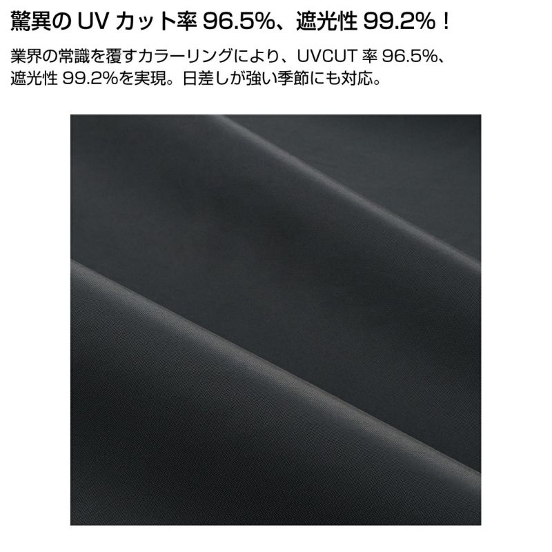 驚異のUV-CUT率96.5%、遮光性99.2%を実現するブラックカラーで、日差しが強い季節でも安心。