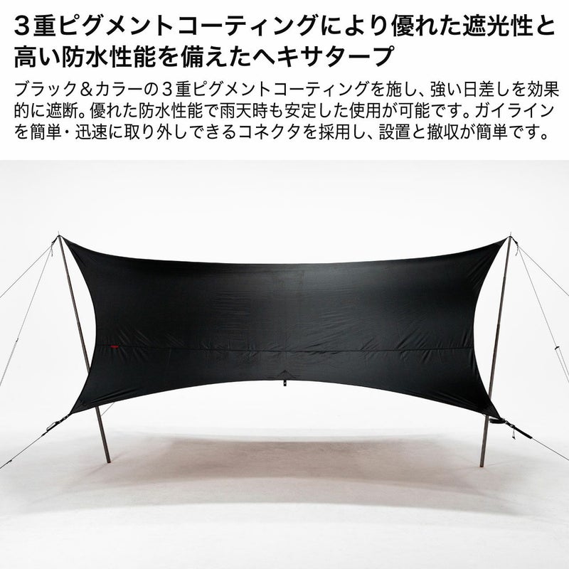 優れた遮光と高い防水性能を備えたヘキサタープ