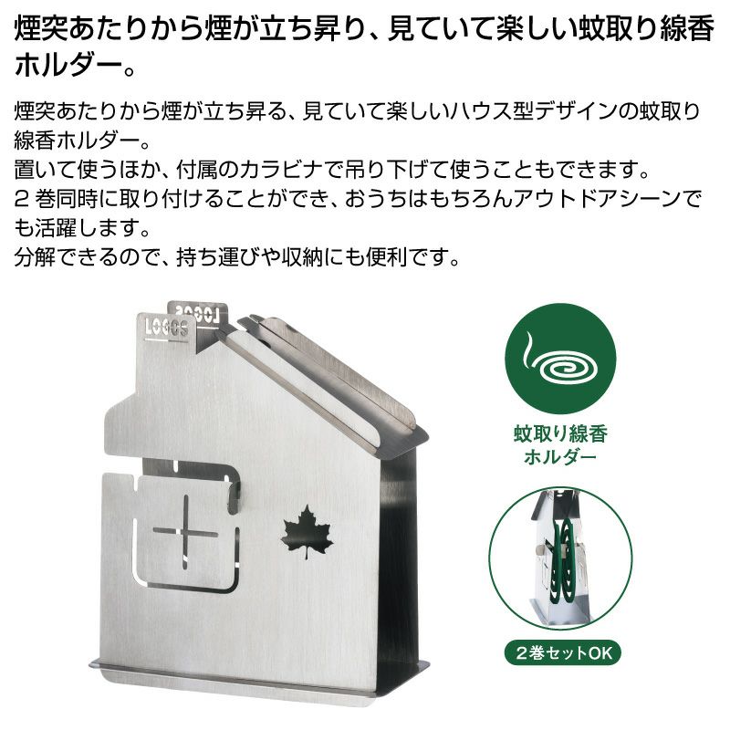 煙突あたりから煙が立ち昇る、見ていて楽しいハウス型デザインの蚊取り線香ホルダー。