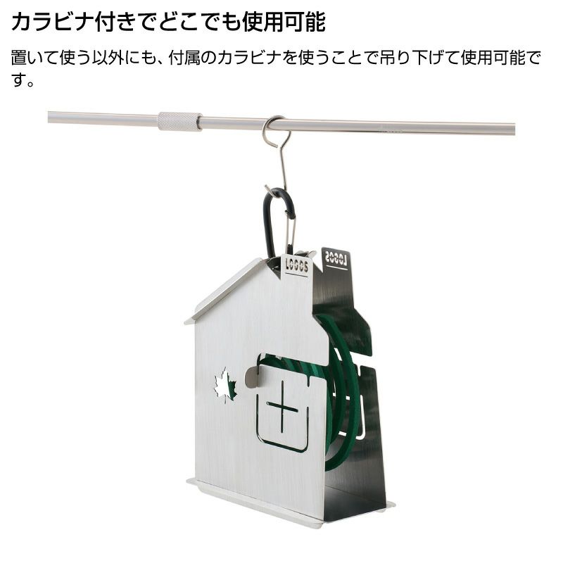 置いて使うほか、付属のカラビナで吊り下げて使うこともできます。