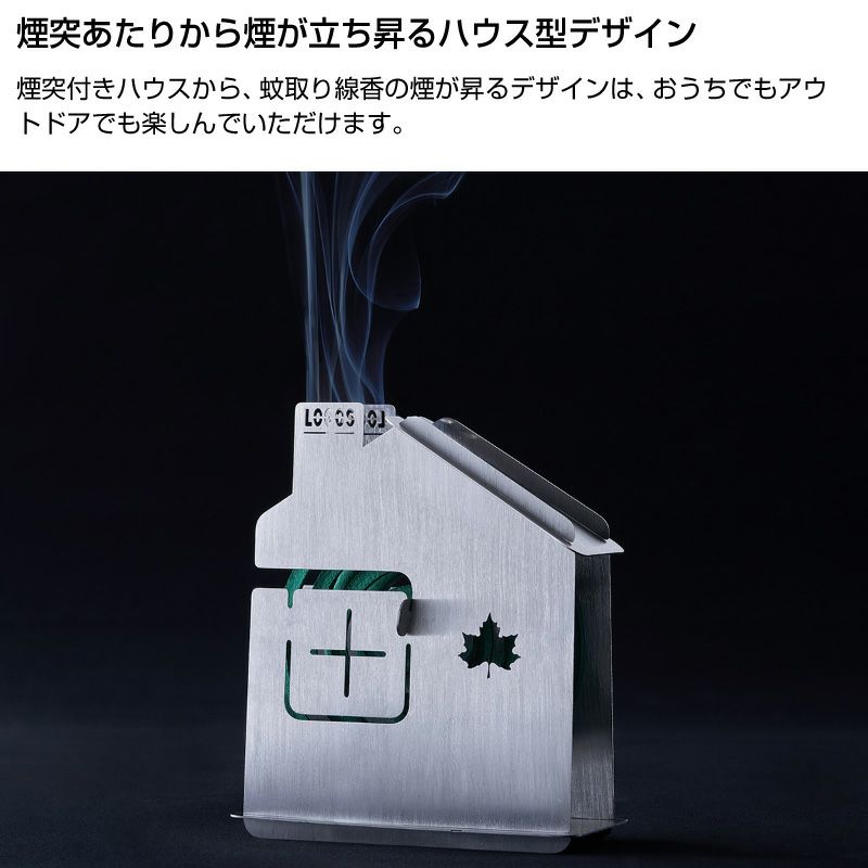 煙突あたりから煙が立ち昇る、見ていて楽しいハウス型デザインの蚊取り線香ホルダー