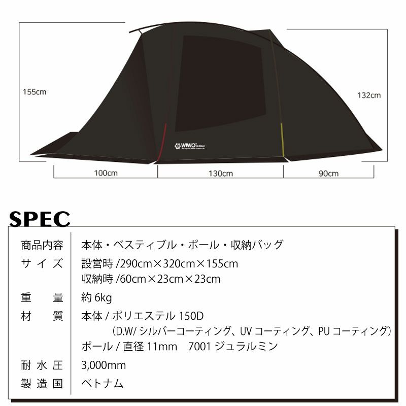 他の画像を見る ファミリーキャンプにおすすめサイズのドーム型テント個性的なデザインはオシャレで機能的 【正規販売】WIWO ウィーオ YAKDOME450 Coyote ヤクドーム450 コヨーテ テント 販売価格 ¥ 176,000 税込 在庫切れ 詳細を見る お気に入りに登録する