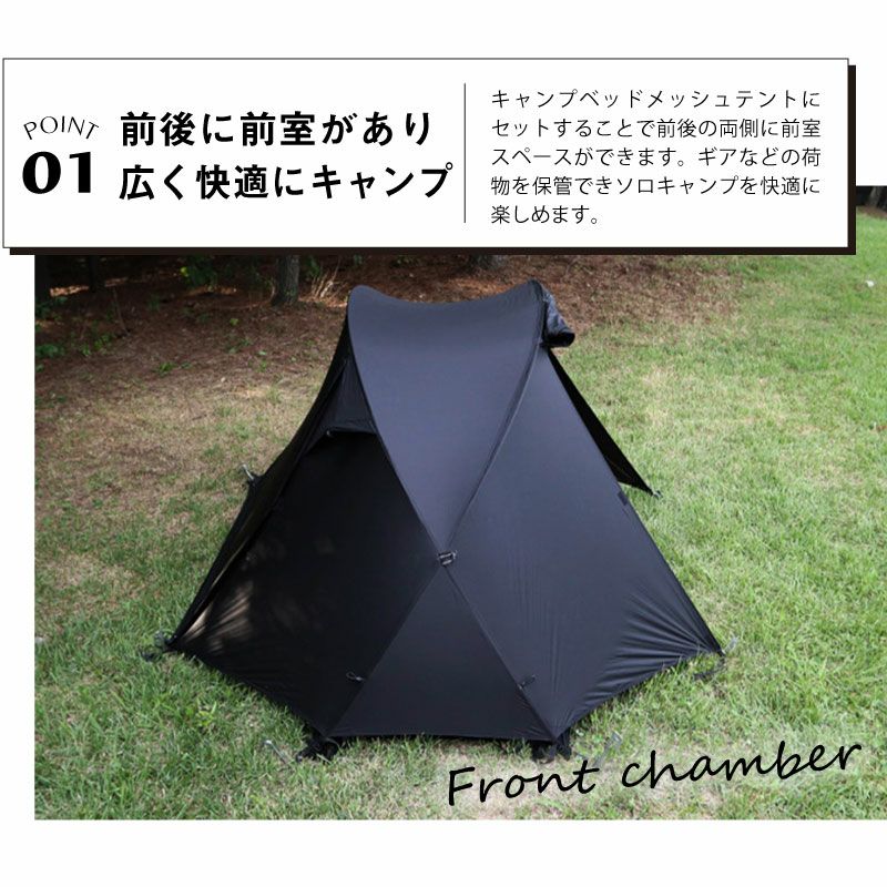 キャンプベッドメッシュテントと併用することでソロテントとしても使用可能な専用フライ(オプション製品)です。