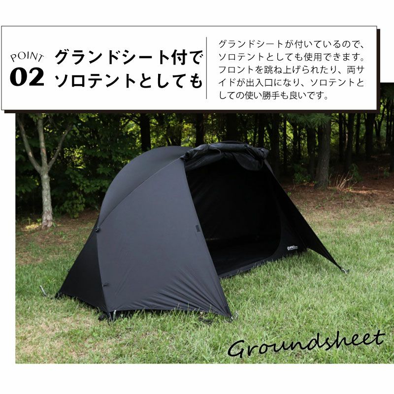 また、グランドシートが付属しているためコットなしでもソロテントとしても使用可能です。