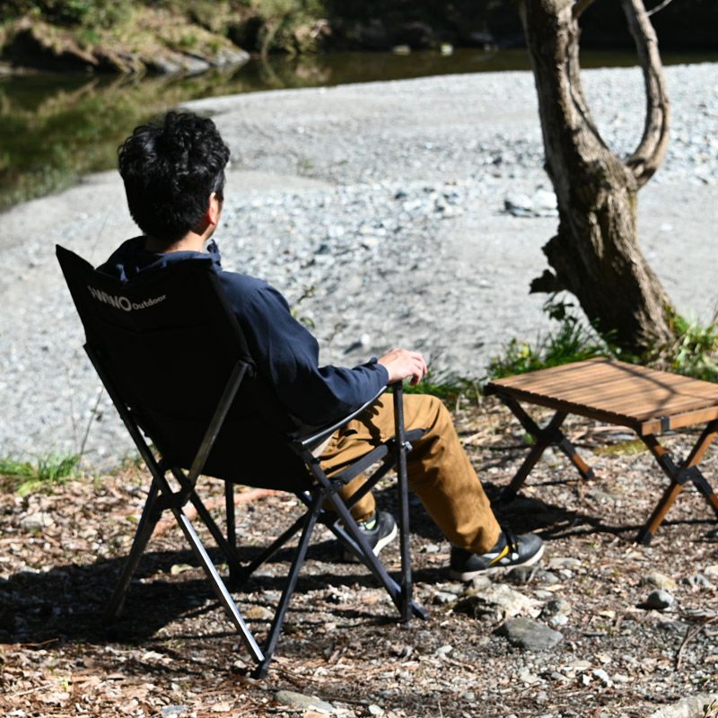 快適な角度でくつろげる、WIWOのコンパクトになる折りたたみチェア。