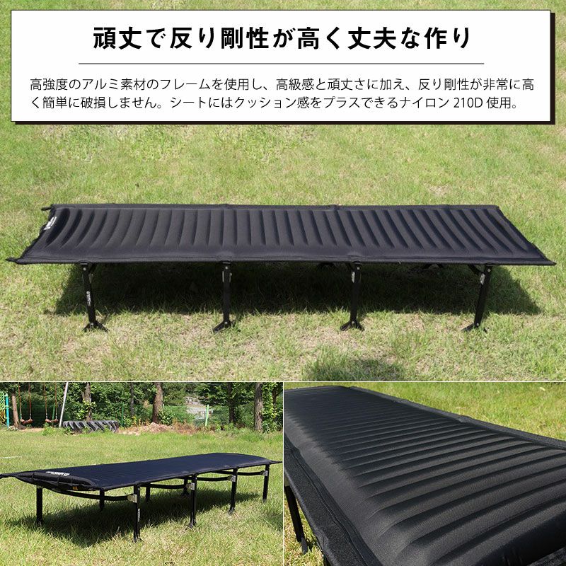 材質:フレーム/デュラルミン、脚/アルミニウム、折りたたみ部品/ダイキャスト、マット/TPUコーティング ナイロン210D 7cmエアーマット