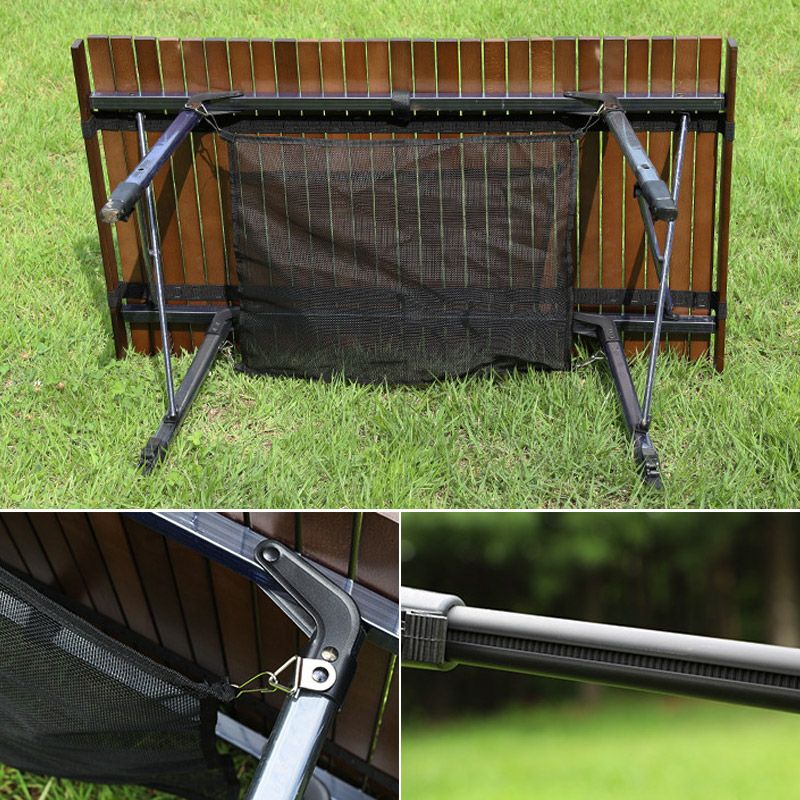 脚部にはメッシュ棚を取り付けることができ、小物を収納するのに便利です。