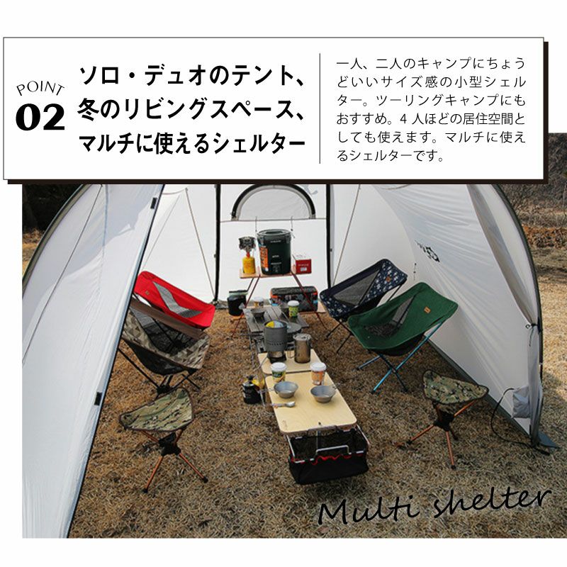 4人程度のリビングスペースとしても快適に利用できるマルチに使えるシェルターです。