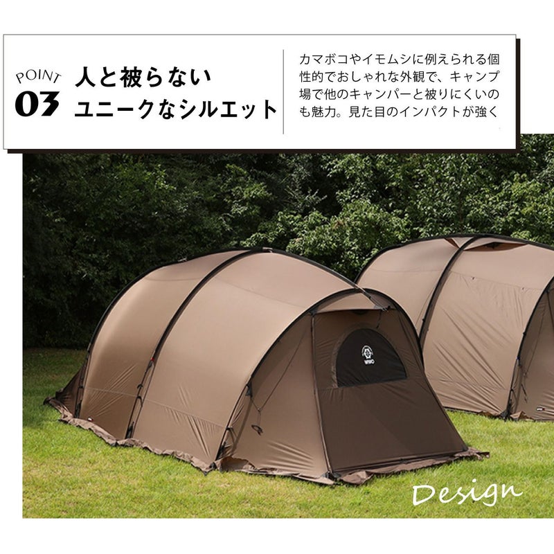 カマボコやイモムシに例えられる個性的でおしゃれなデザインで他のキャンパーと被りにくいのも魅力。