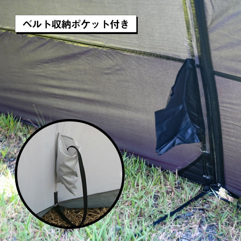 前後左右に大きなメッシュ窓があり跳ね上げもできるので、解放感もありいろいろなシーンで使えます。