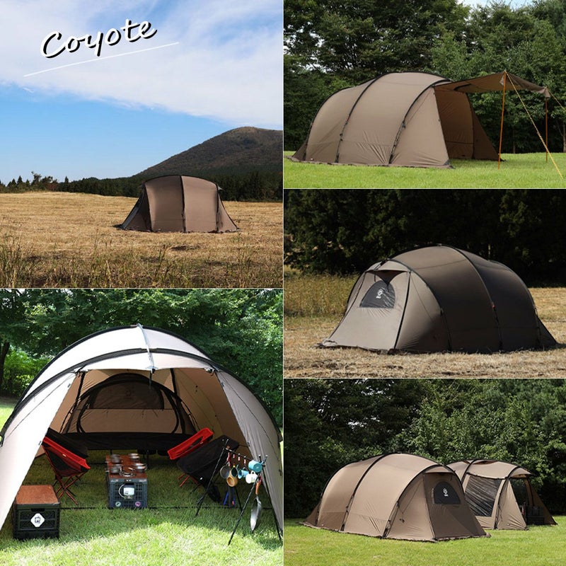 トンネル型でデッドスペースも少なくマルチに使えるシェルターと専用インナーテントのセット!