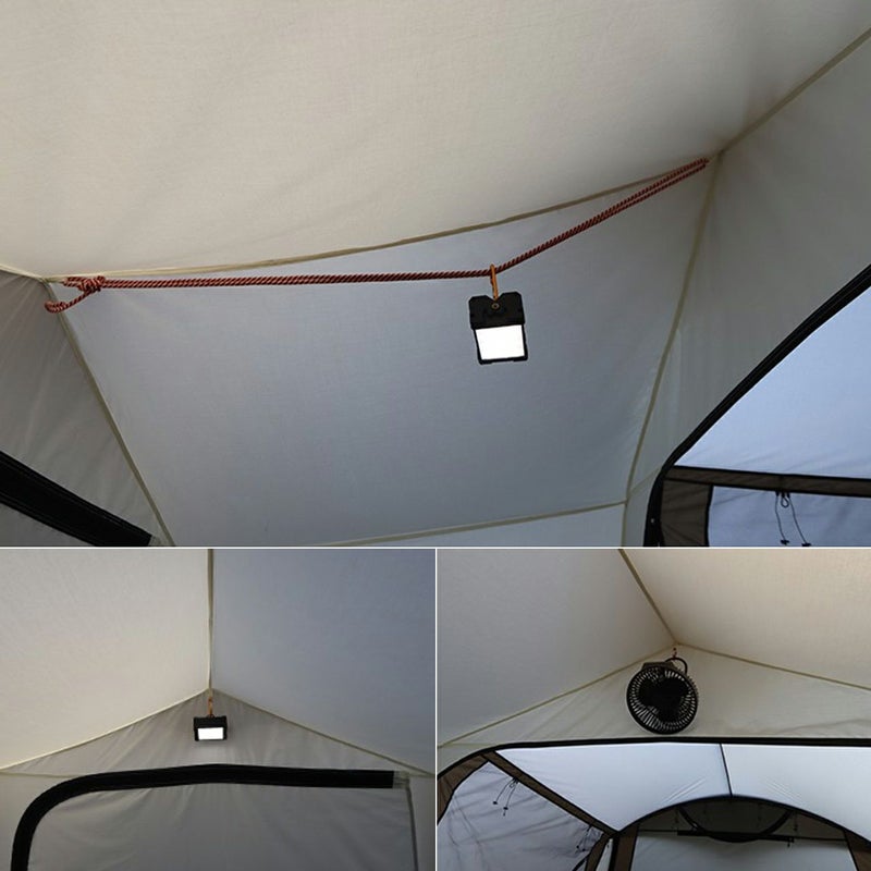 テント上部に2つのリングが付いており、ランタンやサーキュレーターなどを掛けることができます。