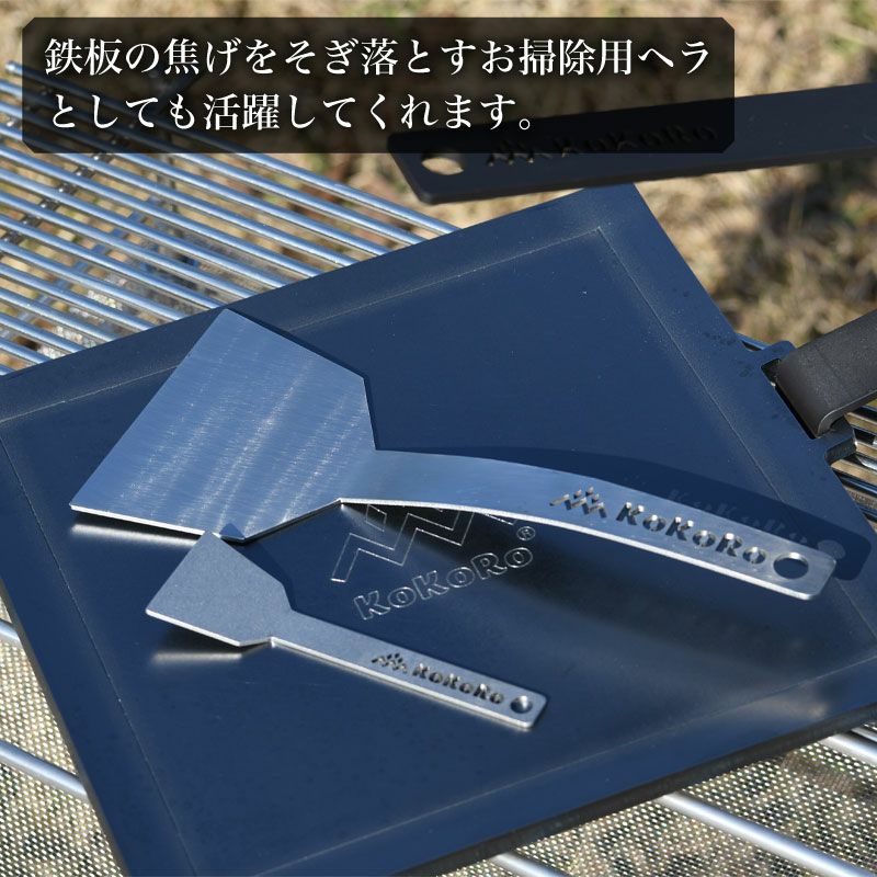 KOKOROのロゴ入りステンレス製の万能掃除ベラ。