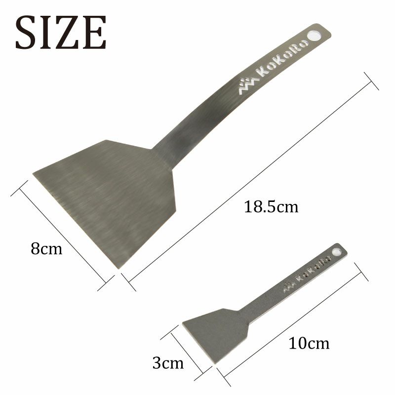 サイズ:もんじゃヘラ/全長100mm×幅30mm、お好みヘラ/全長185mm×幅80mm