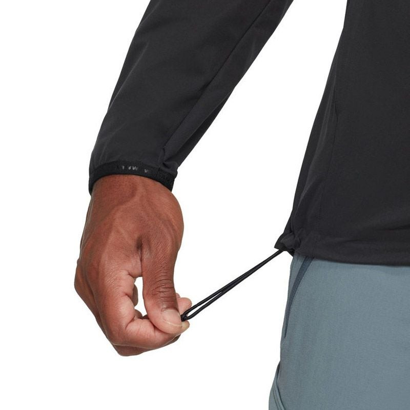 2点調節式のフード,ドローストリング式の裾,伸縮性のある袖がフィット感を高め,