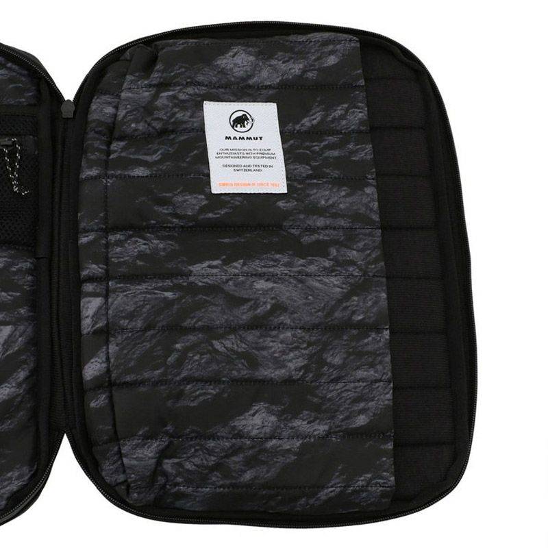 側面に配したキャリングハンドルにより,持ち運びのしやすいラップトップケース。マンモスロゴをデザインポイントにした,ユニセックスで使えるシンプルなデザインです。フリースライニング付きのラップトップコンパートメントは,パッド入りの安心設計。ノートやファイルなどを自由に入れられる,便利な内ポケットも配置しています。