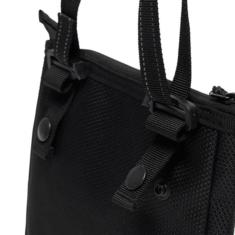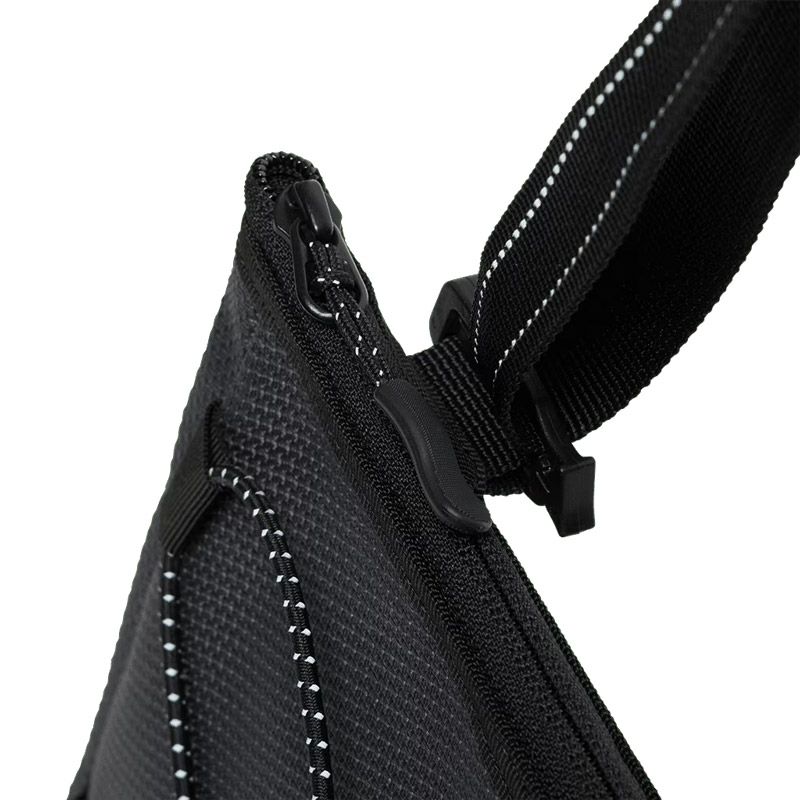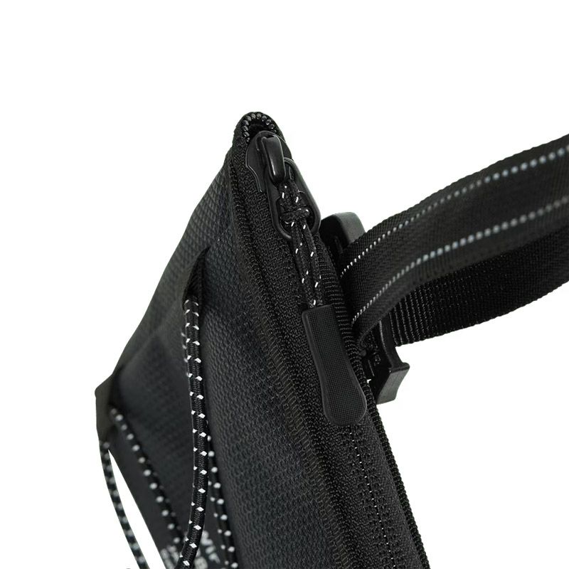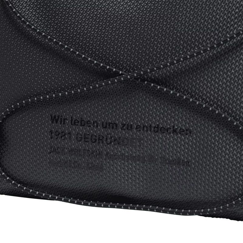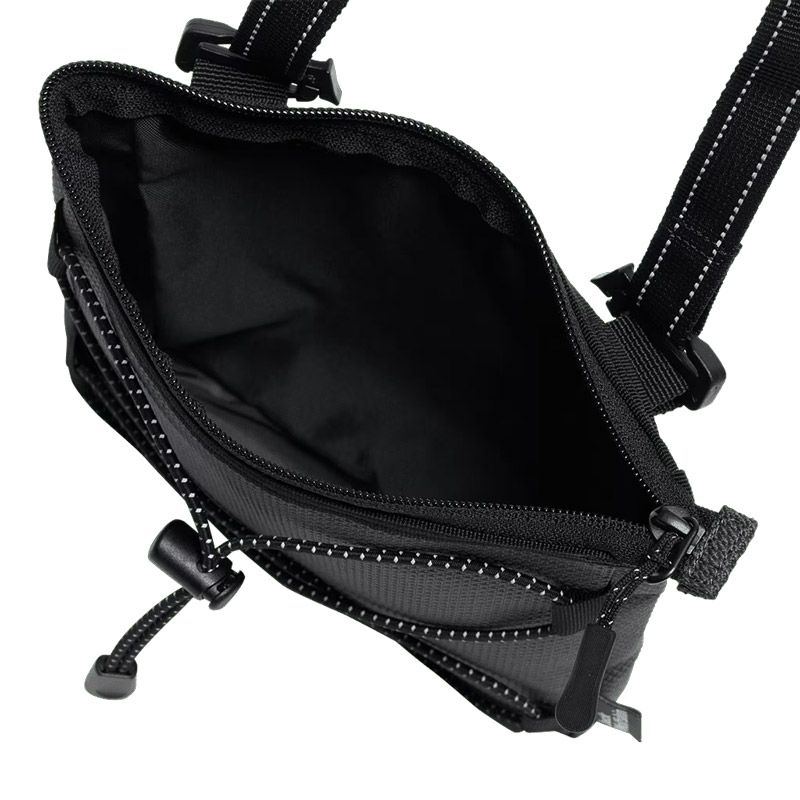 ドイツ語のカンパニーネームタイポグラフィのプリントを配したシンプルな1気室仕立ての本体に、リフレクターを埋め込んだバンジーコードを装備。