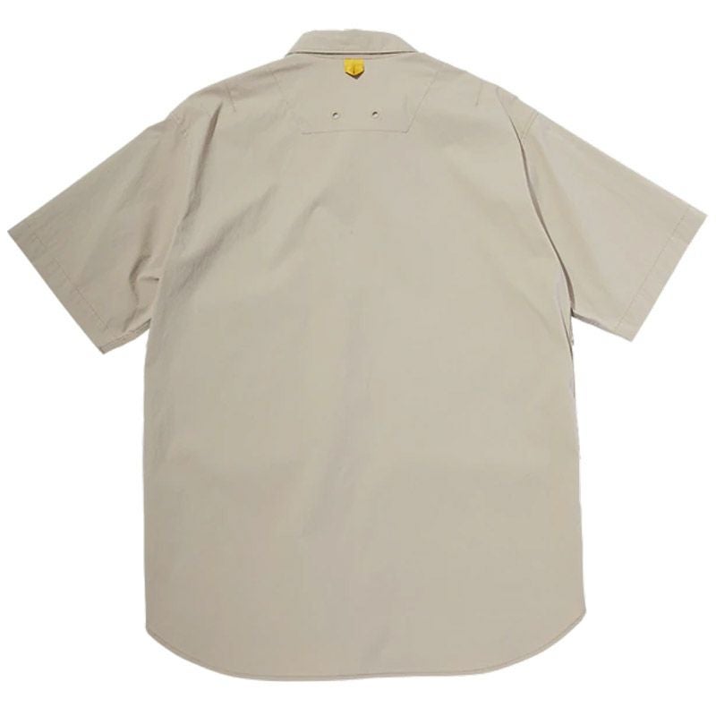 両腹に配したマチ付きのフラップポケットやDリング、マルチタブ、右胸のトランシーバー用ポケットなど、キャンプやアクティブシーンに有効な収納ディテールを多数備えた、高機能なボタンシャツ。