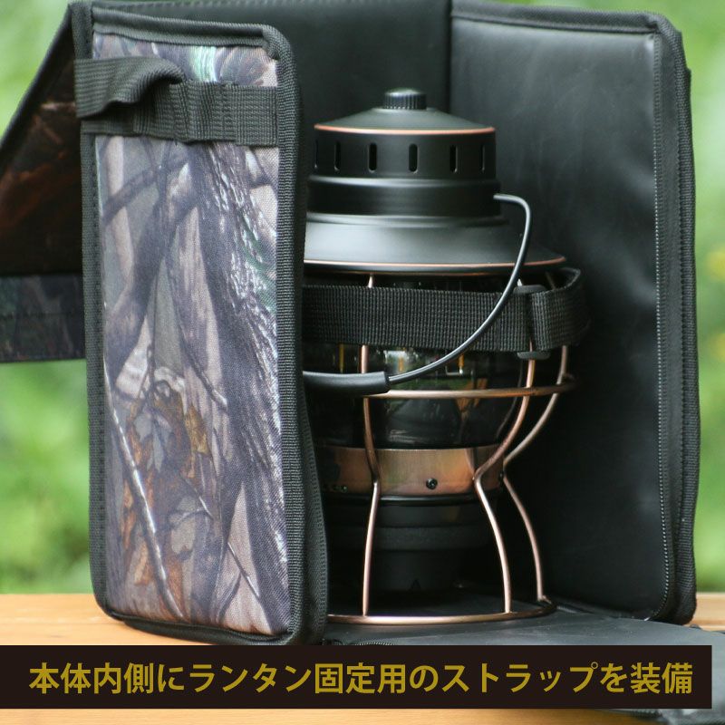 本体内側にランタン固定用のストラップを装備、しっかりとランタンを固定する事が可能