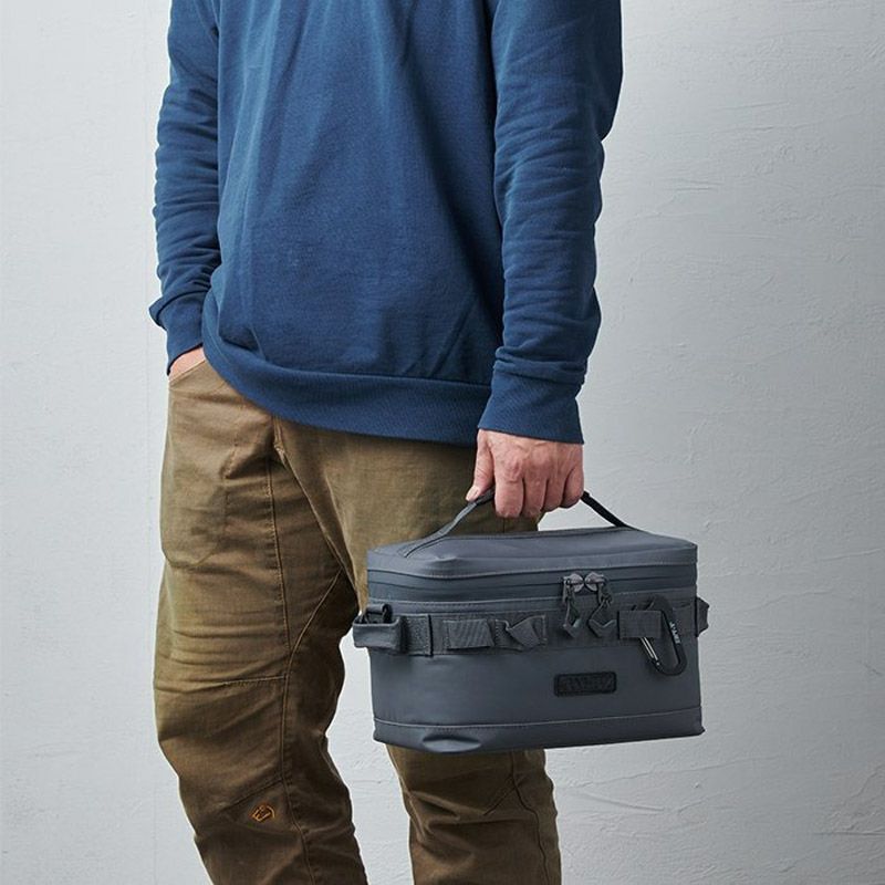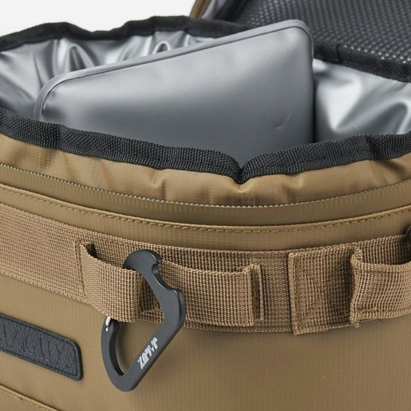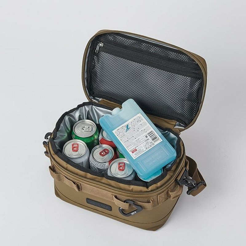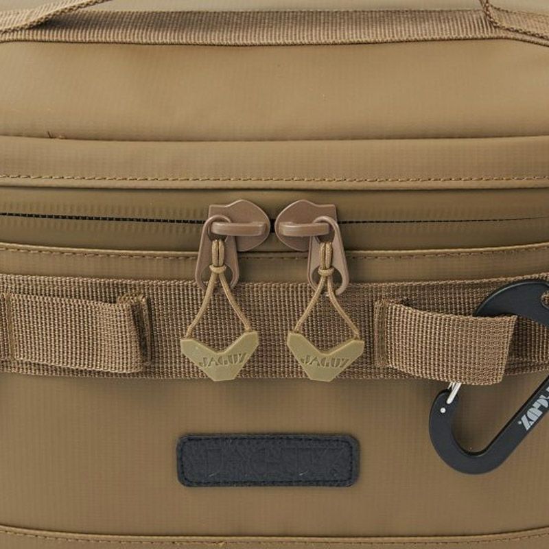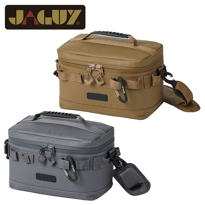 JAGUY NEWモデル 従来モデルより更に保冷力UP!新たに進化したソフトクーラー。 表生地は耐久性,防汚性の高いターポリンを使用。 高い保冷力を誇る4層構造。 断熱材の厚みは20mm厚フォームを使用。内貼はPEVA素材を使用。縫い目のない高周波圧着仕様、ファスナーも止水ファスナーを使用し気密性を高めています。 本体にはカップなどを掛けられるカラビナループやJAGUYロゴ入りカラビナ型ボトルオープナー付き。 上蓋内側は保冷剤などを入れられるメッシュポケット。引きやすいJAGUYオリジナルジッパープルを装備。 350ml缶が8本収納可能。仕切り板(デバインダー)1枚付属。 取外し可能なショルダーストラップ付属。 第三者機関の保冷性能検査にて外気温30℃で約44時間、40℃で約30時間の保冷効果を実証しています。 ※試験体JAGUYソフトクーラーM(20L) 使用条件によって保冷時間は異なります。