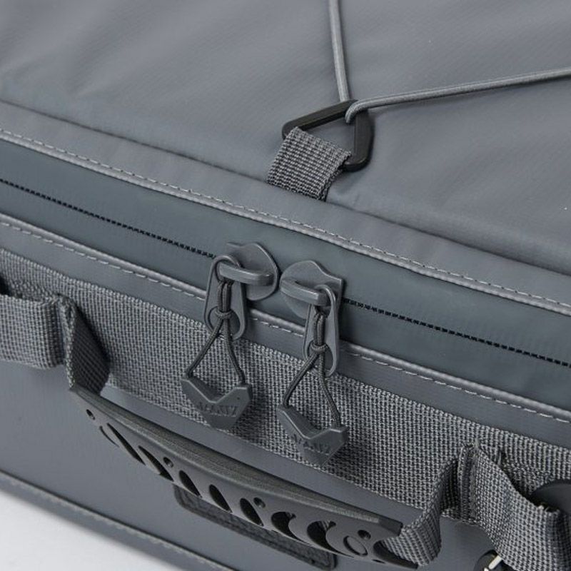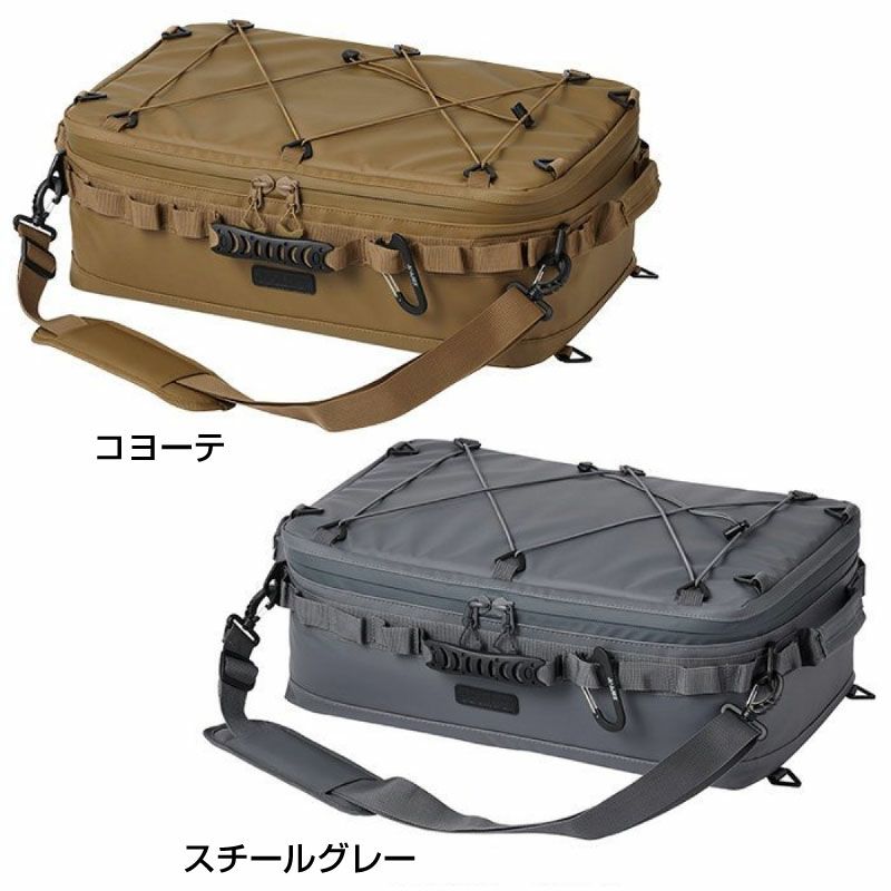 JAGUY NEWモデル 従来モデルより更に保冷力UP!新たに進化したソフトクーラー。 表生地は耐久性,防汚性の高いターポリンを使用。 高い保冷力を誇る4層構造。 断熱材の厚みは20mm厚フォームを使用。内貼はPEVA素材を使用。縫い目のない高周波圧着仕様、ファスナーも止水ファスナーを使用し気密性を高めています。 本体にはカップなどを掛けられるカラビナループやJAGUYロゴ入りカラビナ型ボトルオープナー付き。 収納ギアに合わせて調整可能なデバインダーが2枚付属されています。 ドリンク缶や食材のパックやタッパーなどの収納に適したサイズと容量。フラット型なので350ml缶 1ケースが丸ごと収納可能。 取外し可能なショルダーストラップ付属。 第三者機関の保冷性能検査にて外気温30℃で約44時間、 40℃で約30時間の保冷効果を実証しています。 ※試験体JAGUYソフトクーラーM(20L) 使用条件によって保冷時間は異なります。