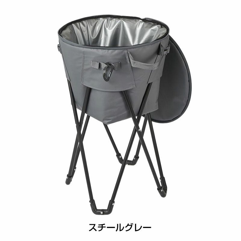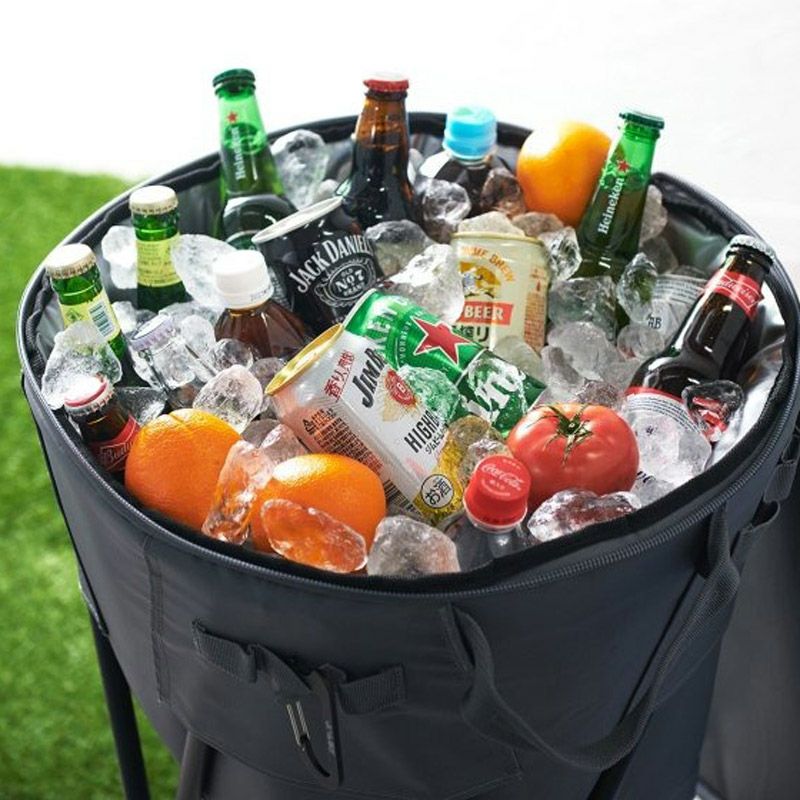JAGUY NEWモデル 新たに進化したスタンドクーラー。 表生地は耐久性,防汚性の高いターポリンを使用。 高い保冷力を誇る4層構造。 水と氷を入れて飲み物・果物などを冷やせば、みんなでパーティーをする為の便利アイテムに。 本体にはカップなどを掛けられるカラビナループやJAGUYロゴ入りカラビナ型ボトルオープナー付き。 断熱材の厚みは10mm厚フォームを使用。内貼はPEVA素材を使用。縫い目のない高周波圧着仕様で気密性を高めています。 両サイドには持ち手があり、上蓋を外し2つの取っ手を持てばマルシェバックとしても使用出来ます。引きやすいJAGUYオリジナルジッパープルを装備。 蓋、胴体、スタンドと3つに分解してコンパクトに収納可能。 (収納袋付き) お家のバルコニーでアウトドア気分を楽しめたり、べランピング・ホームパーティーでも大活躍します。 アウトドア・BBQ・キャンプ・お花見・海・運動会・クラブ活動など様々な用途で使用出来ます。