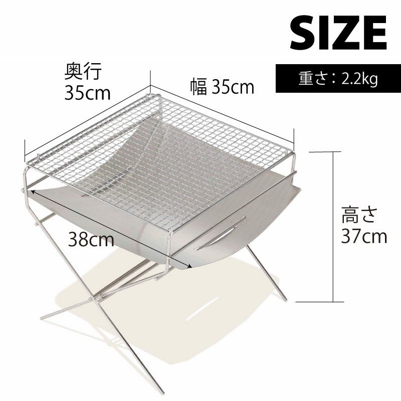 丈夫なフレーム構造&焼き網付きでファイヤーグリルとしても。