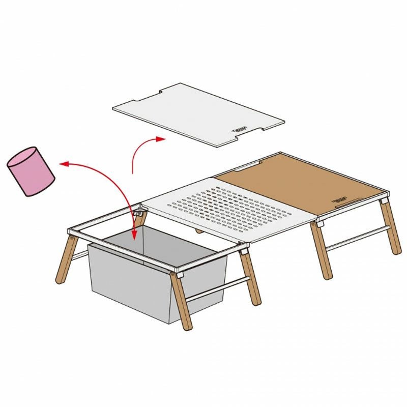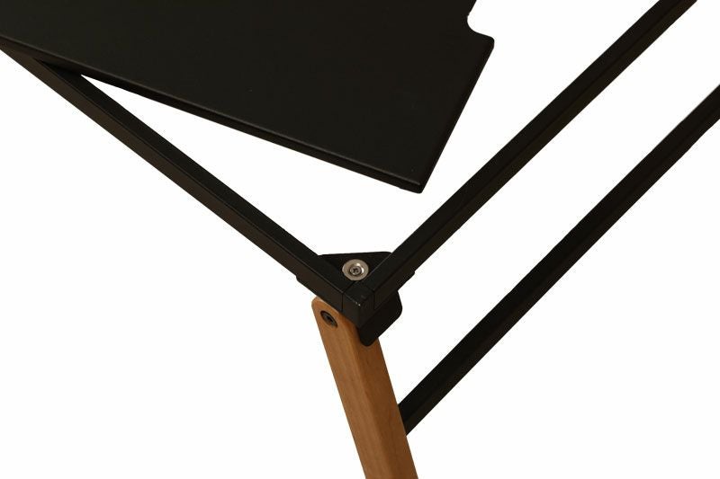 ソロキャンプからファミリーキャンプまで幅広く対応するローテーブル。 アイアンタイプの天板は、武骨で重厚感溢れるマットブラックの天板。 表面にはピッチング塗装を施しました。 ザラリとした質感で、テーブルに置いたものが滑りにくい効果があります。 別売りの連結用のオプション天板を使用すると、様々なレイアウトが楽しめます。