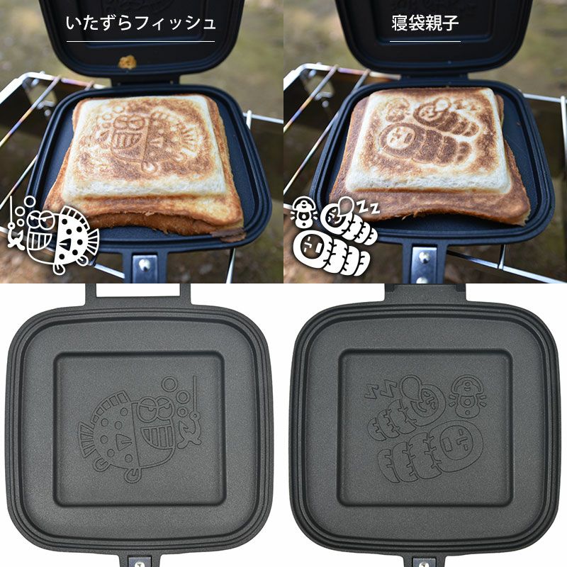 両面に2種類(寝袋親子、いたずらフィッシュ)の可愛い焼き目は子どもも喜んでくれますよ。