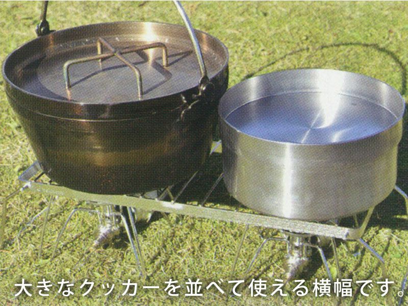 焚き火台の上にのせて大きな鍋で調理ができます。