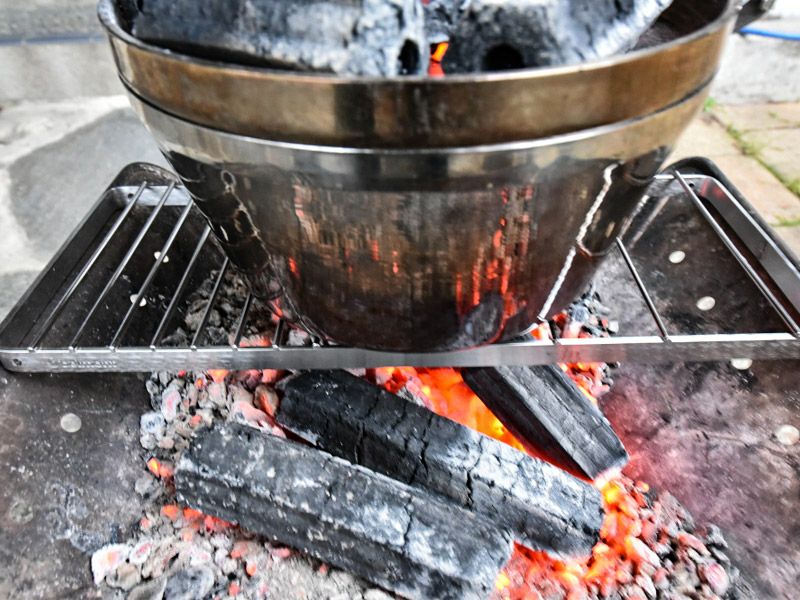 焚き火台の上にのせて大きな鍋で調理ができます。