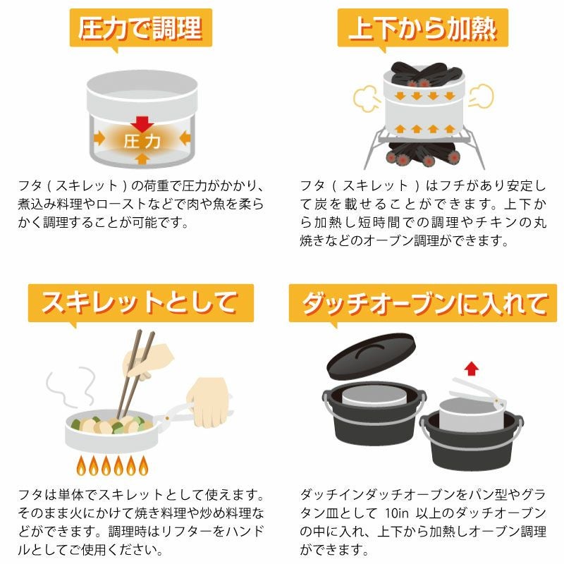 セット内容 本体、スキレット兼フタ、リフター、底網、