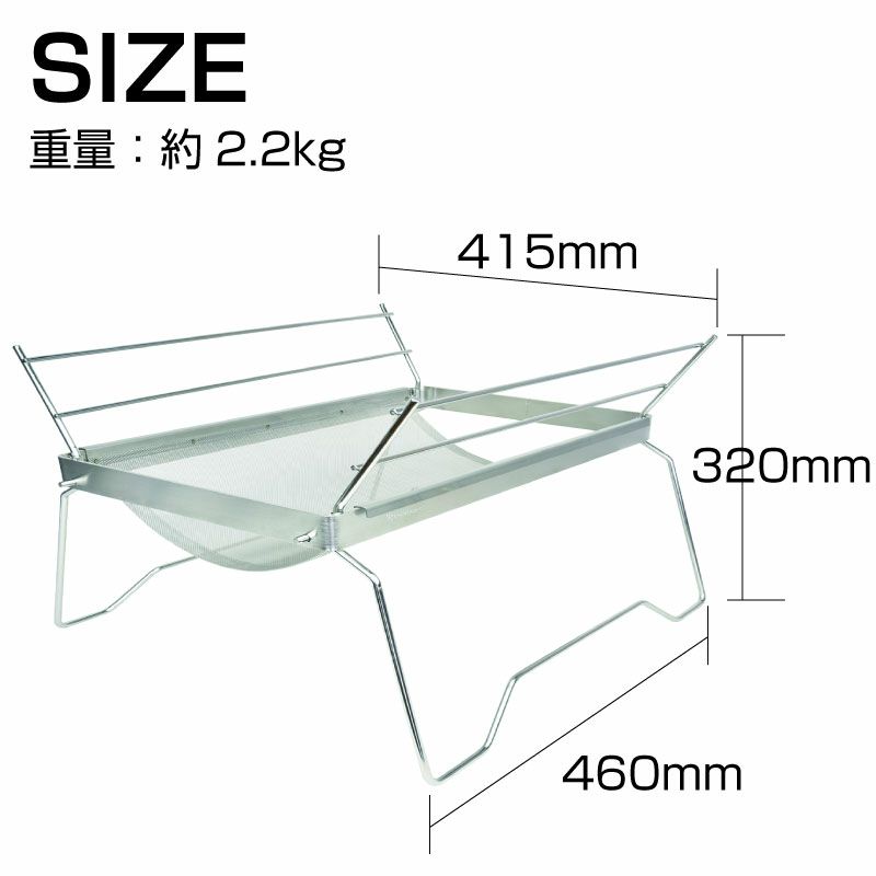 重量は2.2㎏と軽量ながらワイヤーシェルフをフレーム左右に差し込むことで、薪の乾燥や調理なども可能。