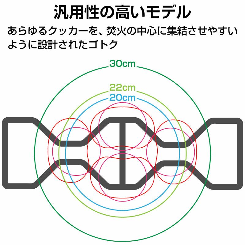 あらゆるクッカーをバランスよく乗せれるように設計された汎用性抜群のゴトク