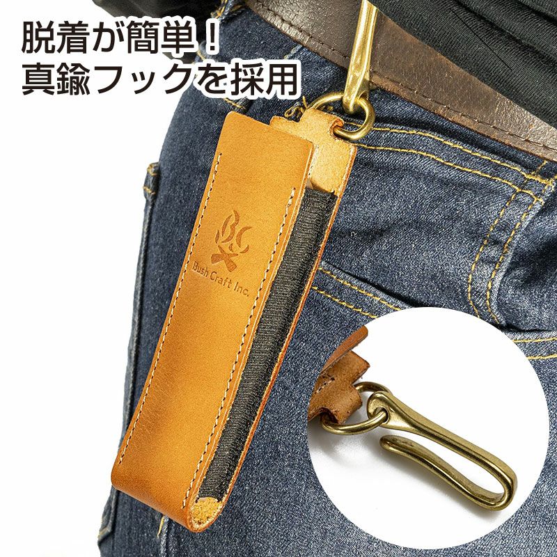 また、腰ベルト等を外さなくとも脱着できる真鍮フックを採用。