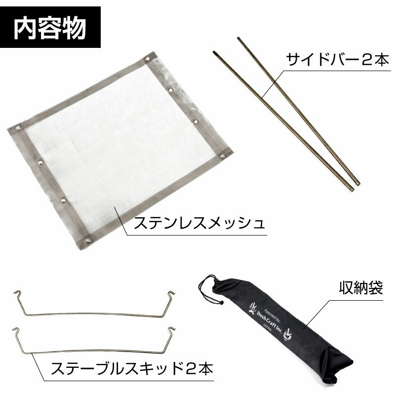 内容物 ステンレスメッシュ×1、ステーブルスキッド×2、サイドバー×2、収納袋