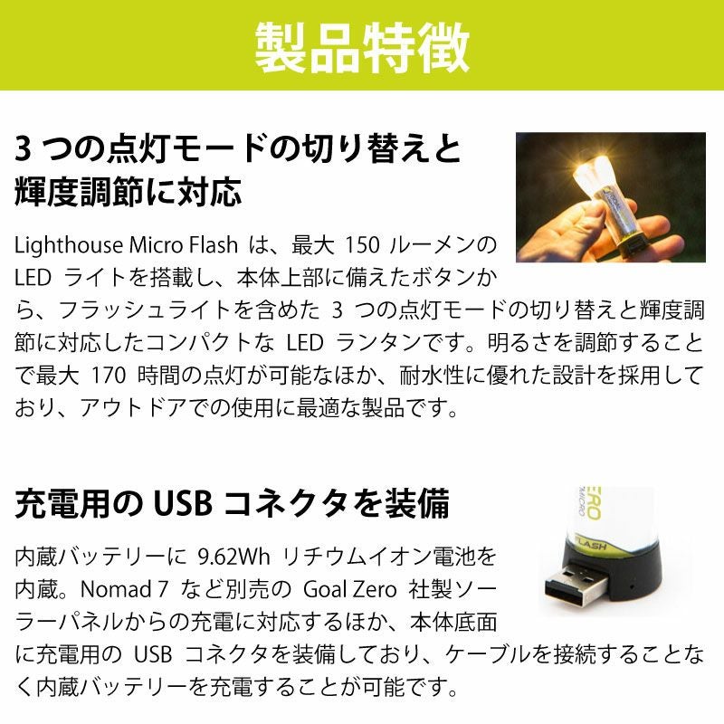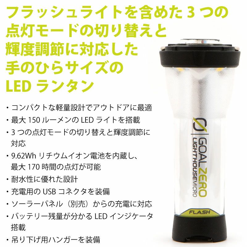 GOAL ZERO ゴールゼロ 懐中電灯付きLEDランタン ライトハウス マイクロ フラッシュ USB充電式ランタン コンパクト 耐水 防滴