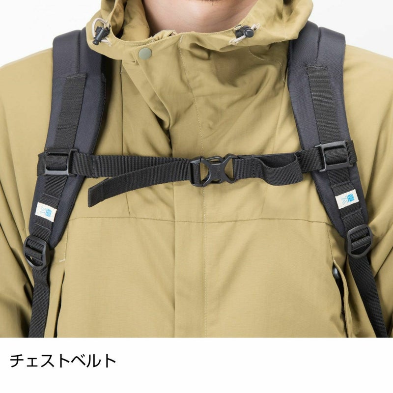 カリマー人気の定番リュックサック VT day pack F (20L) に25Lが限定モデルで登場。シンプルでオーセンティックなルックスでありながら使いやすい機能やポケットが充実。アウトドアテイスト溢れるデザインのアクセントであり、カラビナなどをかけることのできるデイジーチェーンをフロント部分に装備。物の出し入れがしやすいパネルロードタイプ。